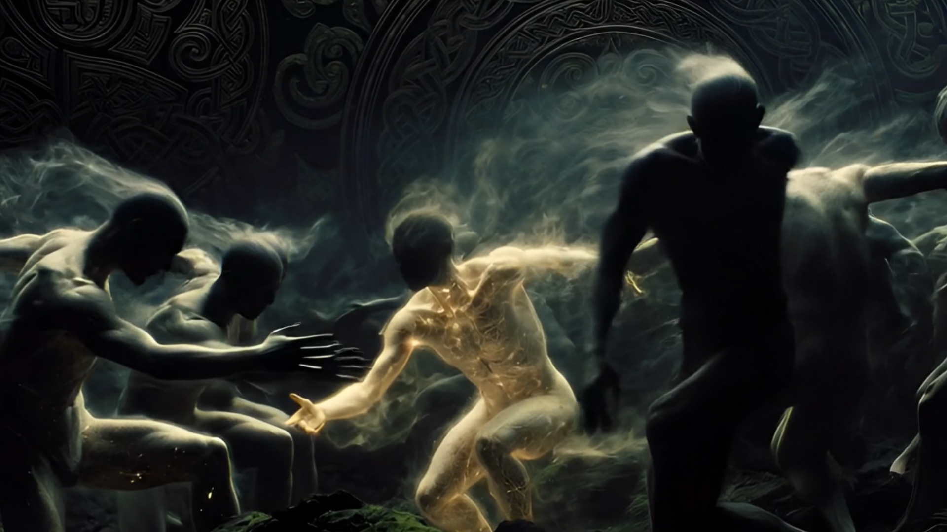 From high above, the Earth breathes in the dark. An ancient land glows softly beneath the soil, veins of teal and emerald light pulsing with primordial life. Forests whisper through mist and moonlight, roots and fault lines forming a hidden, living network. The ground trembles gently, conscious and sacred, as if revealing the soul of the planet itself. A slow aerial descent invites us into this otherworldly vision — a moment of reverence, where nature is alive, watching, and eternal.